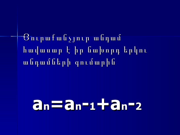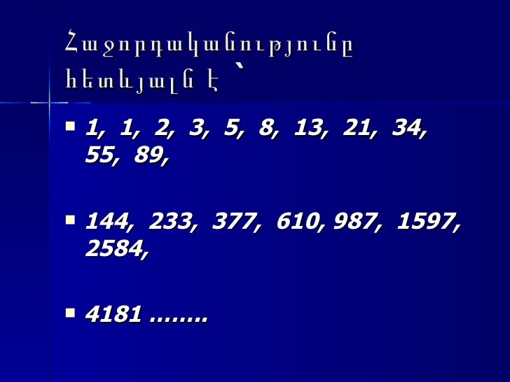 Գեղեցիկ և հետաքրքիր թվային հաջորդականություն է, որը մեզ հանդիպում է տարբերմաթեմատիկական իրադրություններում, բնության երևույթների ուսումնասիրությանժամանակ և առաջին անգամ դիտարկել է Լեոնարդո Ֆիբոնաչին: