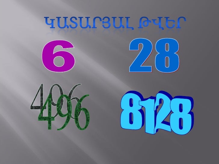 Հաջորդ կատարյալ թվերը 496-ը և 8128-ն են: